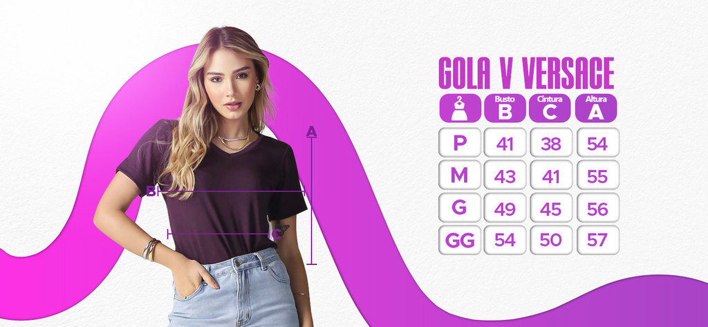 T-shirt Gola V produzida na malha Versace. Seu efeito super soft e alto alongamento dado pelo elastano são suas principais caracterísicas. Com um caimento perfeito, é uma peça super leve e ideal para o dia a dia, cores básicas e fáceis de combinar. Com um acabamento impecável, costura ombro a ombro e o melhor de tudo, fabricadas com tecido da melhor malharia do Brasil, Menegotti.